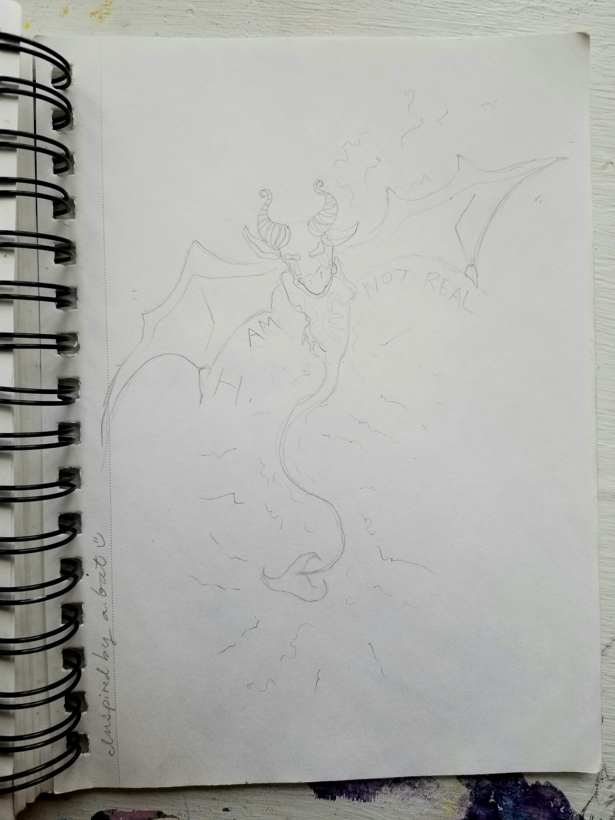 The creepy creature on my sketch page actually scared me really bad to be completely honest! Even though at the time I didn't believe in these entities, even at the time of painting this piece I didn't believe in them.